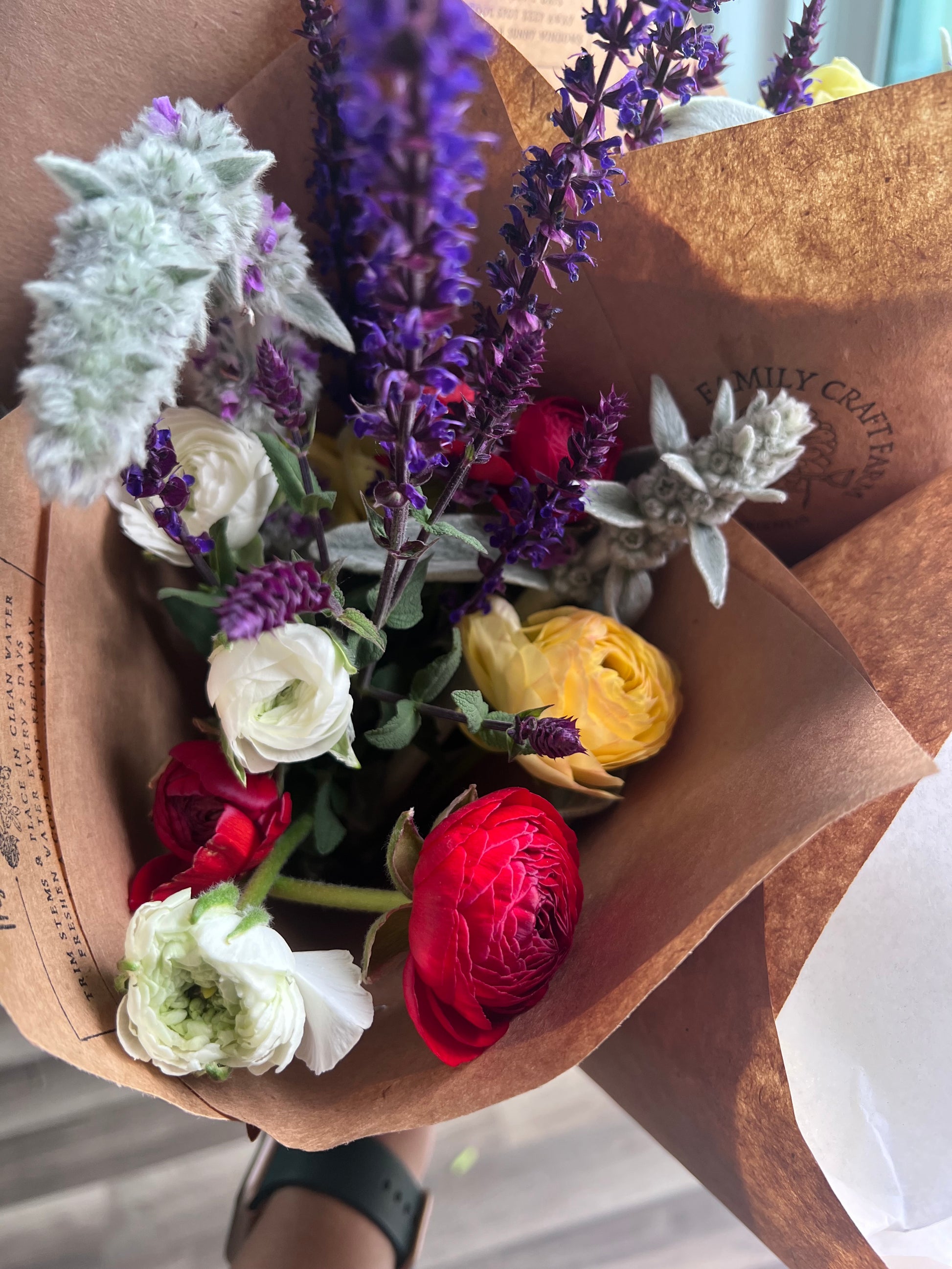 - 1 paper wrapped bouquet - for pick up or delivery