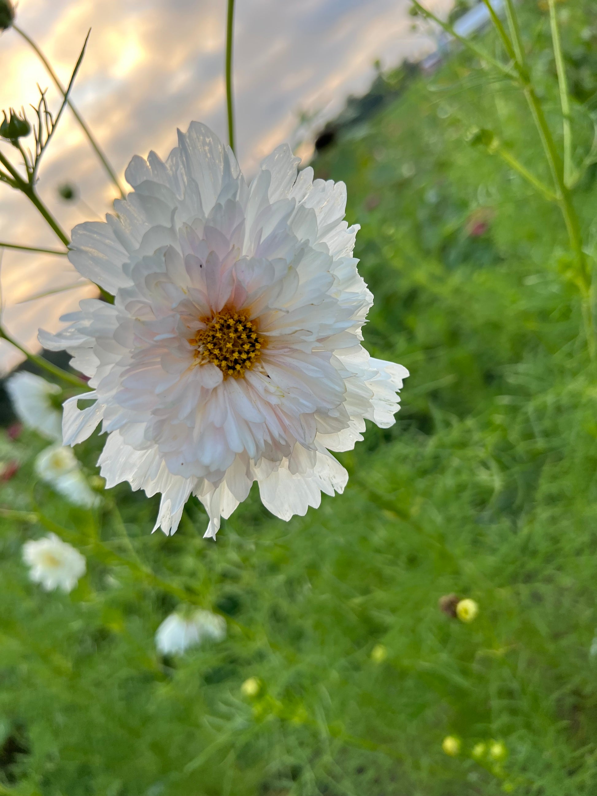 Easy to grow! Cut and come again annuals which means the more you cut, the more blooms it’ll produce. Contains a mix of white, pink, and deep purple double cosmos.